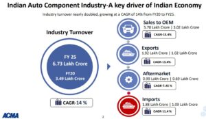 Shradha Suri Marwah, President of ACMA and CMD of Subros, stated that the Indian auto component sector remained a key pillar of the country’s manufacturing strength. She observed that FY25 had been another significant year for the industry, with growth driven by strong domestic demand, increasing exports, and greater value addition.