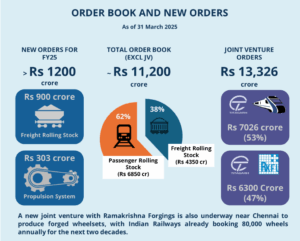 The company is received more than Rs 1200 crore worth of new orders FY25 across various business segments. These include approximately Rs 900 crore in orders for freight rolling stock and Rs 303 crore for propulsion systems. The company’s order book now includes around 11,500 wagons and 1,583 Metro and Vande Bharat coaches.