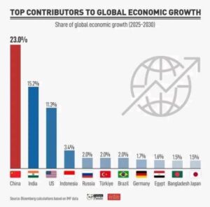 According to the report, India is expected to contribute over 15% of incremental global GDP between 2025 and 2030 — more than any single G7 nation. This far outpaces Japan’s projected contribution of less than 1% and Germany’s 1.3%. Bangladesh is also forecast to surpass Japan, indicating broader shifts in global economic power.